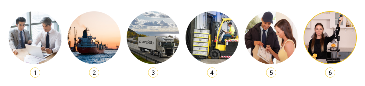 Визиты в другие страны, договоры на разных языках, сертификация, фрахт, таможня и другие важнейшие вопросы берём на себя,пока вы делаете то, что умеете лучше всего – продавать здесь и сейчас. Всё остальное обеспечим мы.